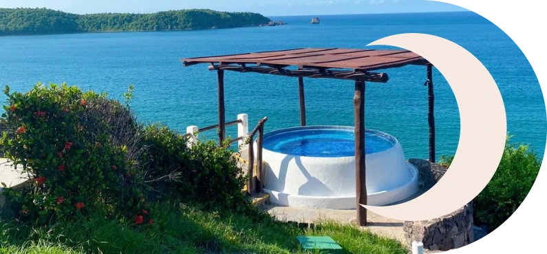 Imagina terminar el día sumergido en agua cálida, con una copa en la mano, mientras el sol se esconde en el horizonte. Aquí, el atardecer es parte del ritual.